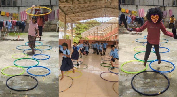 Sneha’s I-statement: I am Sneha. I am 6 years old. Today, Aditi Akka arranged hula hoops and asked us to skip through them. This game is called hoopscotch! While jumping, we also had to do any trick. My favourite prop is poi, so I did poi and jumped through the hoops! I felt so much Joy as I jumped through all the hoops effortlessly! I have the biggest smile on my face!