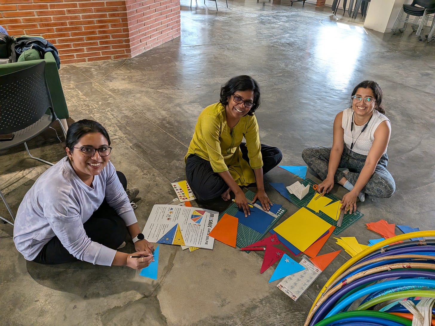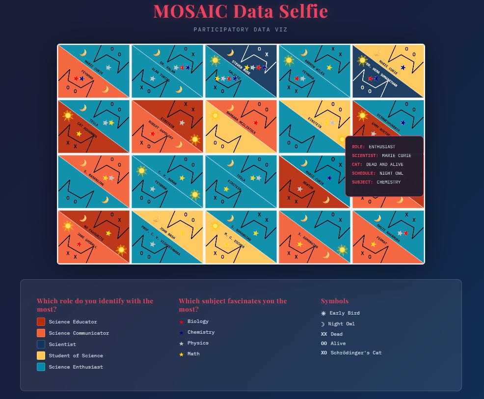 Mathura, my founder and I both enjoy using the Data Selfie concept for events, so we knew we had to do it for Mosaic! I made my first one in August 2025, called Hands of Vizchitra. (Hopefully will blog about that one soon!)
