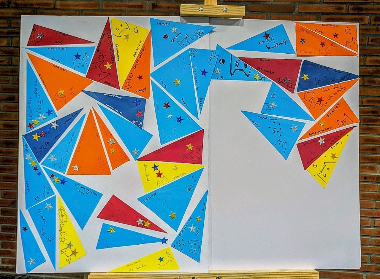 Favorite scientist: Since few women scientists are popularly cited, we wanted to know which scientists inspire people of science. So we asked participants to write the name of their favorite scientist along the hypotenuse.
