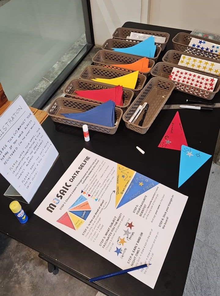 Mosaic has a beautiful logo designed by Krutika Thakkannavar. My original idea was to have triangles around the hollow of the letter O, recreating the logo. But this would’ve been too much instruction for participants. We wanted to keep it self explanatory and simple.